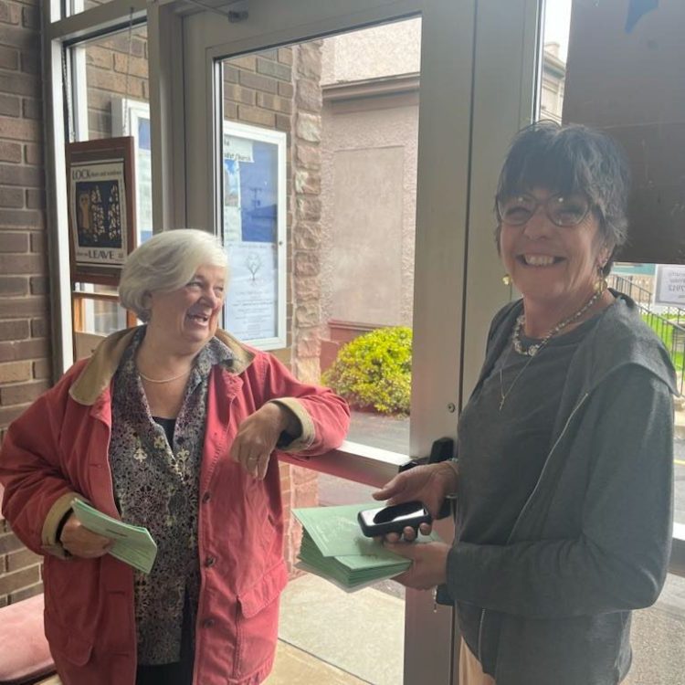 Please come to the back parking lot and to the door marked “CHURCH OFFICE”.
